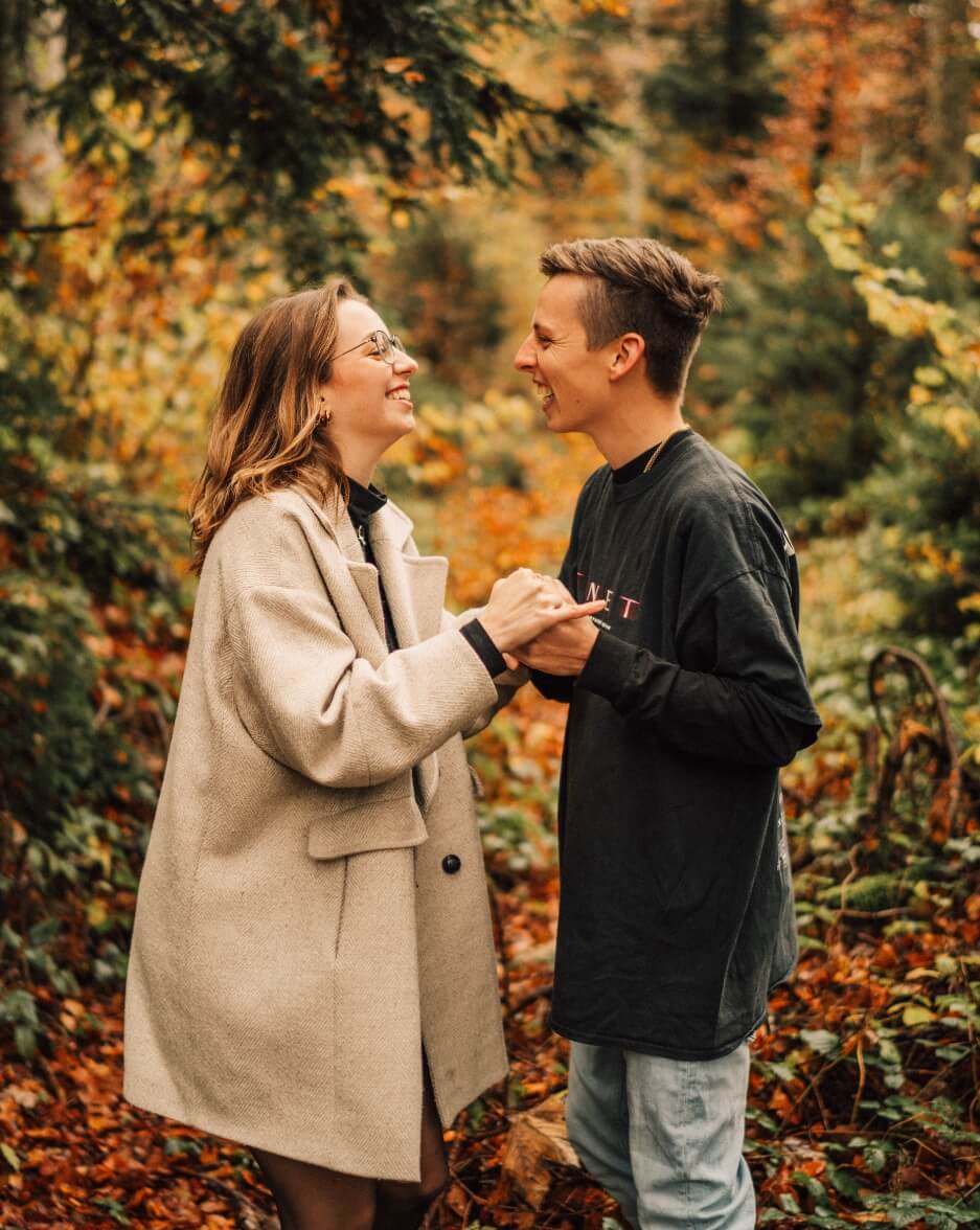 Wir sind Fotografen aus ganzem Herzen. Wir knipsen Fotos, die eure Geschichte authentisch und ausdrucksstark festhalten. Wie habt ihr euch kennengelernt? Vielleicht in einem kleinen Café um die Ecke oder beim Backpacking-Abenteuer in den Bergen? Oder teilt ihr gemeinsame Hobbys wie das Erkunden versteckter Buchläden oder lange Spaziergänge im Wald? Diese besonderen Momente fangen wir in unseren Bildern ein. Der künstlerische Storytelling-Aspekt der Fotografie und unsere minimalistische Ästhetik begleiten uns auf jedem Fotoshoot – um eure Geschichte so einzufangen, wie sie wirklich ist.